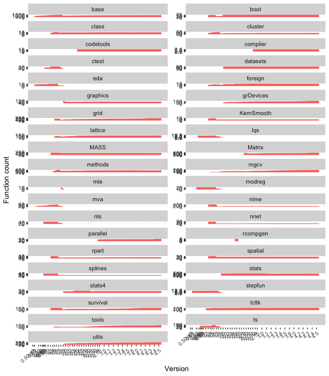 xlab("Version") + ylab("Function count") +
