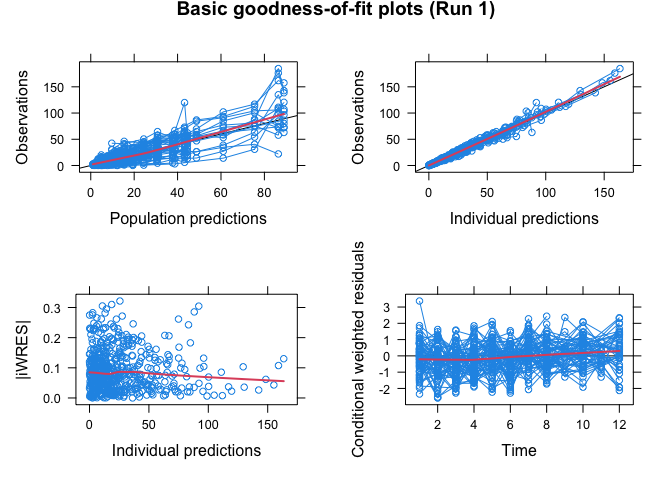 Xpose 4 is a collection of functions to be used as a model building aid for nonlinear mixed-effects (population) analysis using NONMEM. It facilitates data set checkout, exploration and visualization, model diagnostics, candidate covariate identification and model comparison.